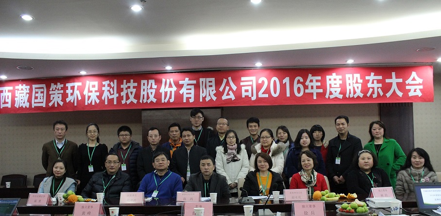 西藏國(guó)策環(huán)??萍脊煞萦邢薰?016年度股東大會(huì)于2月9日在成都召開,股東大會(huì)由董事會(huì)秘書楊偉強(qiáng)主持。董事長(zhǎng)兼總經(jīng)理陳鴻、副董事長(zhǎng)范津濤、副總經(jīng)理幸川、財(cái)務(wù)總監(jiān)趙永花、證券部經(jīng)理張麗、監(jiān)事會(huì)主席蘇昌軍等公司董事、監(jiān)事及核心成員出席本次會(huì)議。