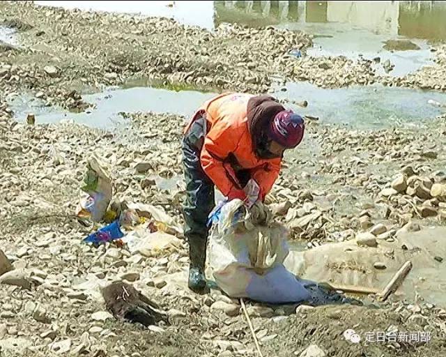 3月的定日,寒風(fēng)依舊凌冽,河道依舊冰封,河水依舊刺骨。為維護(hù)定日的母親河,還碧水與藍(lán)天。19日,定日縣國策環(huán)保的幾名環(huán)衛(wèi)工作者,頂著寒風(fēng),破冰深入到冰冷刺骨的協(xié)格爾河中打撈清理各種生活白色垃圾。他們當(dāng)中一位60多歲的老大爺,不顧氣候的寒冷和自己年老體弱的身體,邁著蹣跚的步伐,艱難的在河中破冰前行,拿著簡易的工具,清理著河中各種垃圾。
