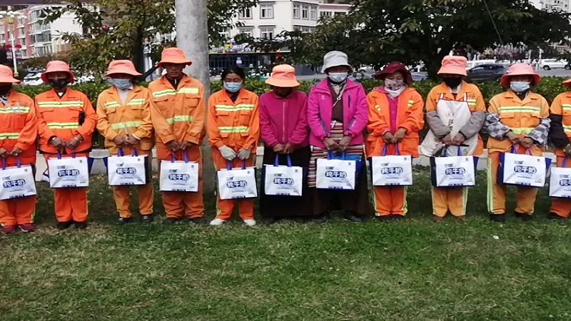 為感謝他們多年來的辛勤付出,國策環(huán)保林芝分公司相關人員向作業(yè)在一線的環(huán)衛(wèi)工人以每人80元的標準,發(fā)放了當地特產雪頓純牛奶、嘎瑪雞蛋、鹽等慰問品,共計274份。