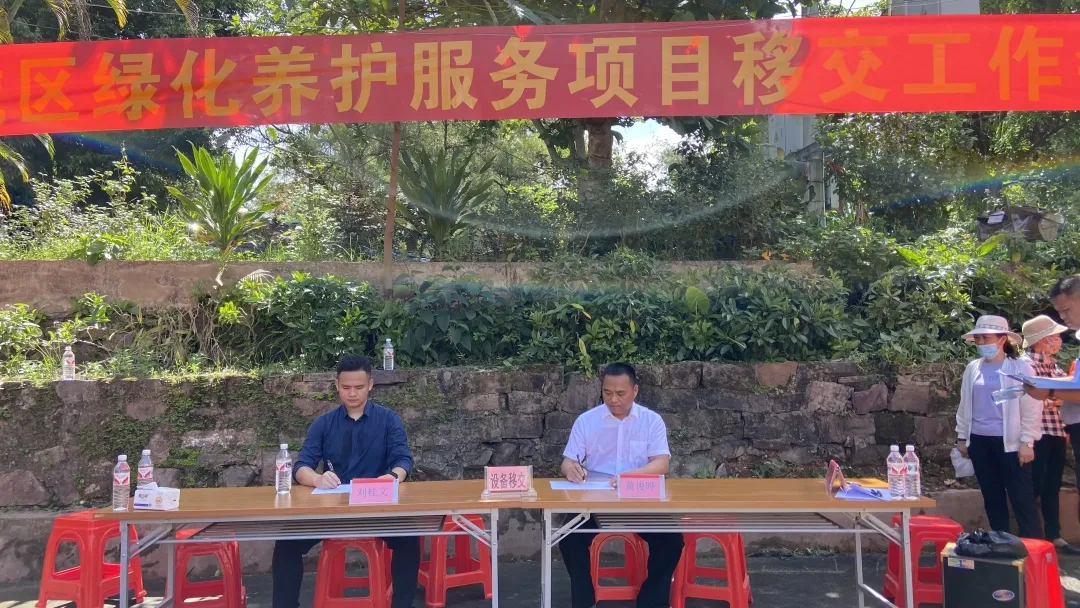 交接儀式上,東興市園林管理處與東興國策環(huán)保經(jīng)過確認后簽署了交接確認書。